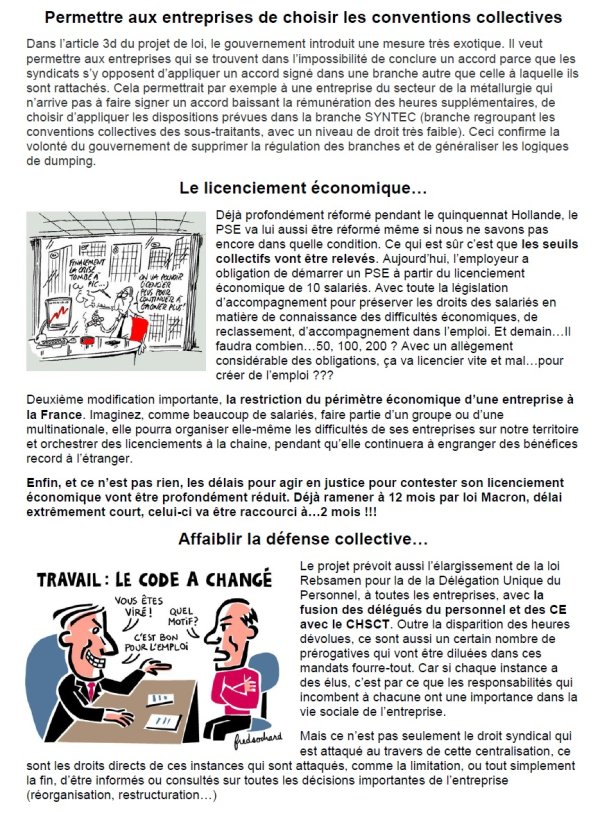 On y apprend également qu’il serait laissé la possibilité de licencier des salariés qui refuseraient d’adapter leur contrat de travail à un accord d’entreprise, même minoritaire. Dès lors, un salarié refusant une baisse de son salaire prévu dans un accord serait licencié sans possibilité de recours.