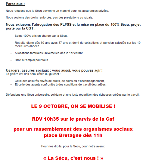Mobilisation le jeudi 09 octobre - RDV à 11 H Place Bretagne à Nantes