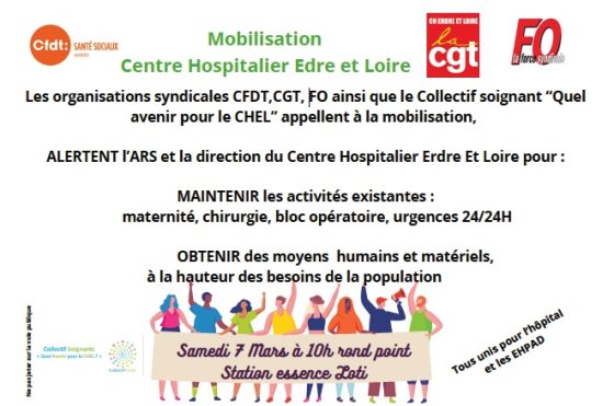 Rejoignez les représentants syndicaux CFDT, CGT, FO du CHEL et Le Collectif Soignant « Quel Avenir