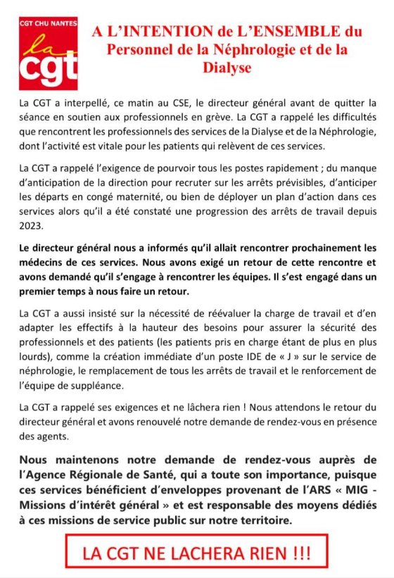 CHU Nantes : le service néphrologie - dialyse se mobile ! ANNULATION