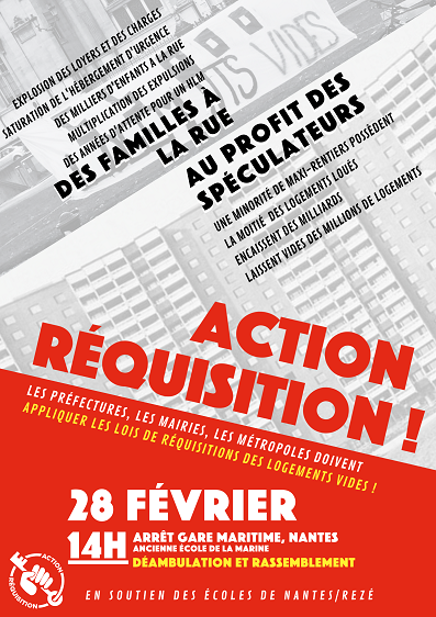 Mobilisons nous collectivement avec les personnes concernées pour l’application de la loi de réquisition et plus largement pour le droit au logement pour toustes ! Descendons dans la rue samedi 28 février ! Un toit c’est un droit !