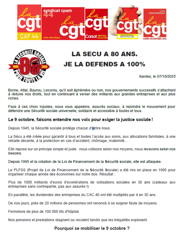Mobilisation le jeudi 09 octobre - RDV à 11 H Place Bretagne à Nantes