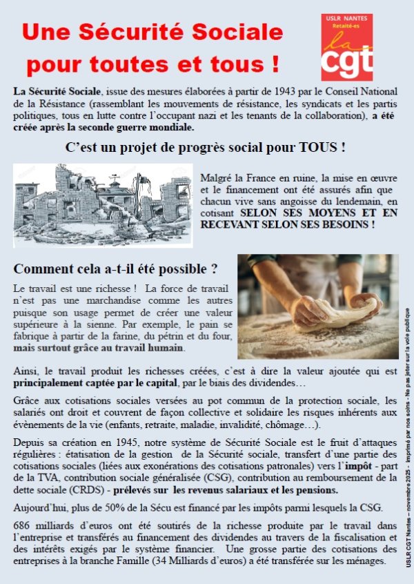 Débat sur la reconquête de la Sécu organisé par l’USLR de Nantes le mercredi 12 novembre 2025 de 9h30 à 12h00 à la maison des syndicats. entrée libre et gratuite