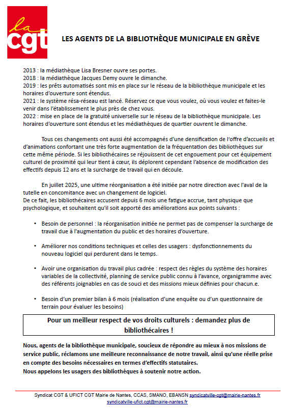 Une séance de tractage aura lieu le samedi 17 janvier 2026 aux alentours de 14h sur l’esplanade en face de l’entrée principale de la médiathèque Jacques Demy.