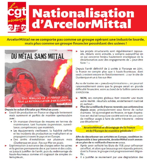 La nationalisation d’ArcelorMittal France est vitale car, du point de vue de la CGT, et de sa Fédération des Travailleurs de la Métallurgie, il devient clair qu’ArcelorMittal :