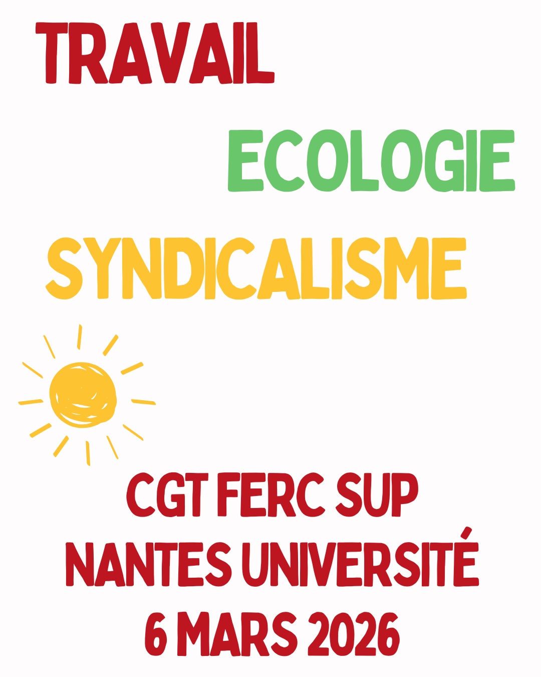 La CGT FERC Sup Nantes Université souhaite expérimenter sur cette année 2026 des temps de réflexion collective (à destination de ses adhérent·es bien sûr, mais aussi au-delà- personnels biatss et enseignant·es, étudiant·es) sur les grandes thématiques qui traversent notre société, notre travail, notre syndicalisme.