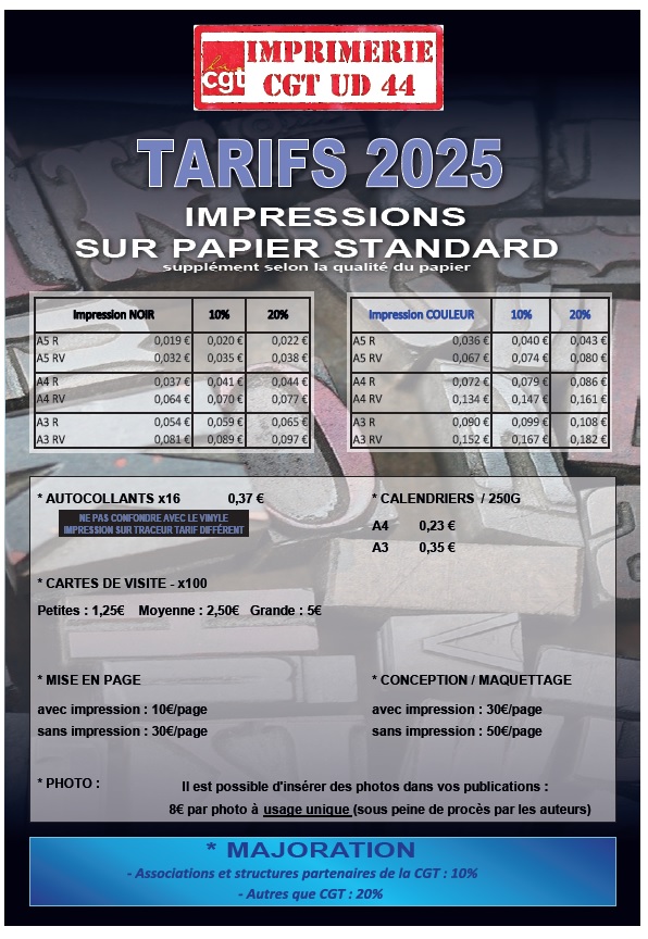 Imprimerie de l’Union Départementale CGT 44 - Tarifs 2025
