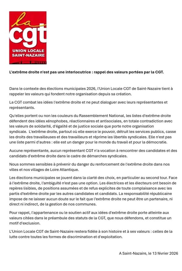 L’extrême droite n’est pas une interlocutrice : rappel des valeurs portées par la CGT